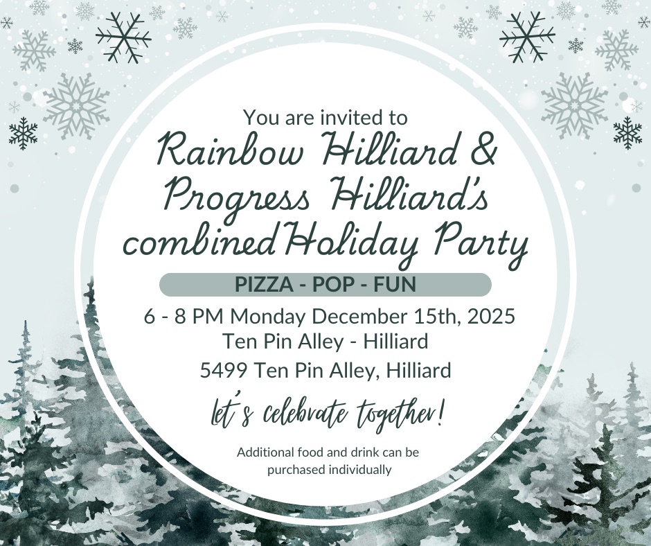 Join us for this year’s Holiday Party. We are partnering with Progress Hilliard again this year. Enjoy some Pizza, Pop and catching up with friends. Adult beverages are available for individual purchase.
